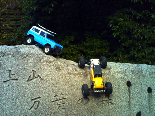 あちゃー、前に水遊びしたのでモーター逝っちゃった? なのでギヤボックスを外してからモーターの様子を見ることに。 しかし何かおかしいです、ギヤを外しているのに前輪が回らなかったんです。 ビードロックリングにCハブ当たっとるやんけ~! (ナックルは青いのw) チッ、走らす前から早速傷物にしてしまった。>< 思えば、トレッドを狭めるために4mm厚のクランプ式ハブ入れてたんですわ・・・。 (ハブは青いのww) ノーマルの?6mmのプラハブを入れて事なきを得ましたが、ギヤボックスに砂が咬んでいるようで異音がします。 ついでに水洗いでもしますか。^^ まだまだおいらも青いの~。(^_-) |