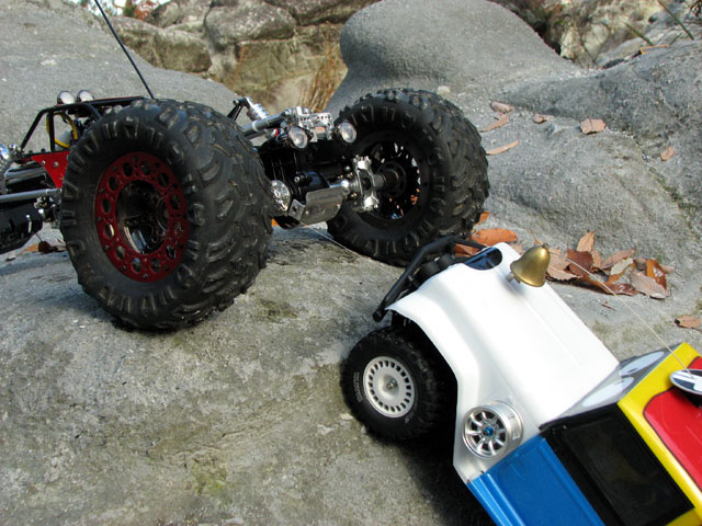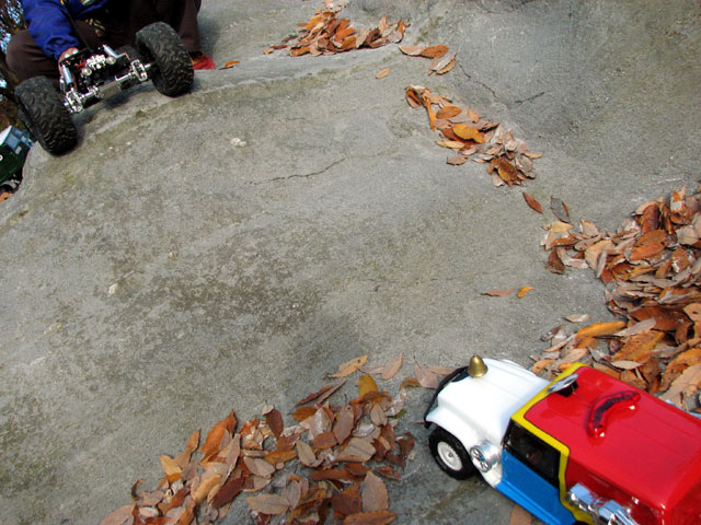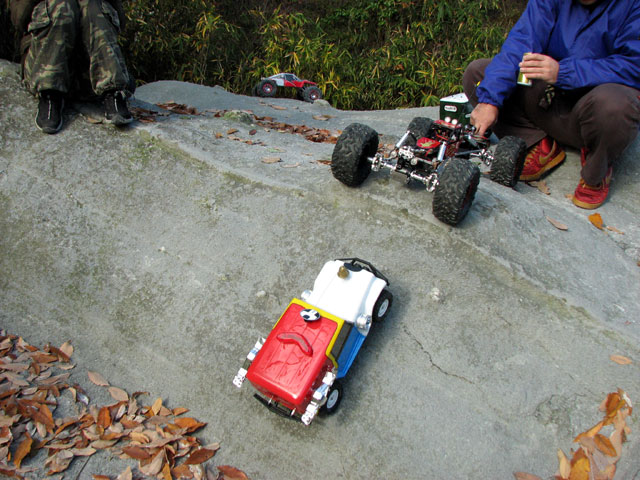 朝起きるとペアガラスではない我が家のドアには水滴がいっぱい。 寒冷じぇんしぇん通過したのでむっちゃ寒いっす!!>< でも、ラジコンしにいくぞ!w ってことで隊長と現地に着くと、すでにリキさんカップルとスコピの方がクロられていました。 集合パチリ。 先週はかなりのクローラーの方がいたと聞いて、2.4じゃない私は少々バンドの心配をしながら現地入りしましたが、お昼まで人が増えることなく問題なくタイヤテストならびにウインチテストを楽しみました。 TLTのタイヤとボディを変えてみました。 ボディーはJConceptsの低重心なクローラー仕様です。 見た目は走りそうなんですがね・・・タイヤが・・・。^^; タイヤは3racing製です。 本当はHBのローバーが欲しかったんですが、どこも売り切れ・・・。orz そこで4本いりで3000円以下で買える3racingタイヤを試しに買ってみたんですが。 触った感じからして、やってしもうた感はありましたが、現地で試して改めて実感、安物買いのなんとやらですわ・・・。^^; リキさんにクーがーを借りて走らせたら、喰うわ・クウワ・クーガー・・・バンザーイ!ってな感じで、タイヤって大事なんだな~って思いました。爆 クーガーにいきそうですが、ローバーのが外形が大きいので魅力です。 登山でも活躍できそうですから。 なにやらコンパウンドブルーとかも出るようですし、なにより安いっす! CCも持って行きました。^^ しかし落ち葉だらけです。 ワイヤーが細いんで画像では見えないんですが、ウインチプレイ中です。w 最後はキッスで問題なくプレイを終えることが出来ました。^^ 寒そう・・・実際、寒かったんですが。w 来週はラスト登山で今年の締め括りとします。 PR |
