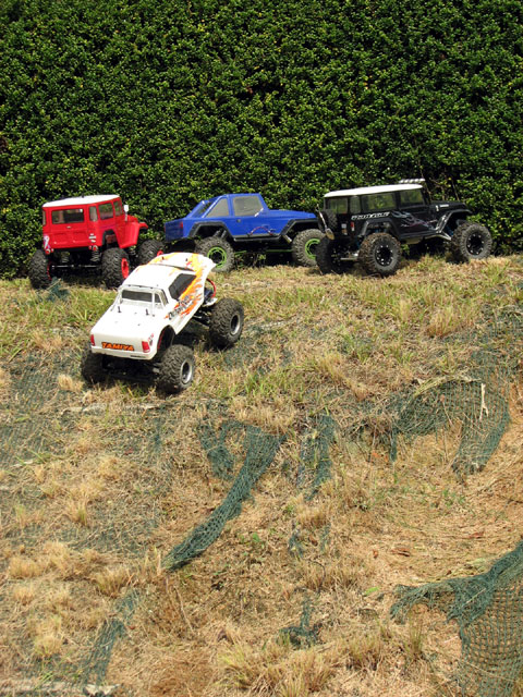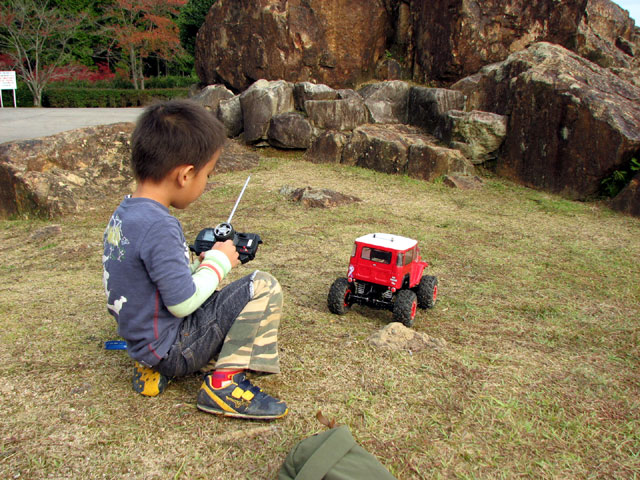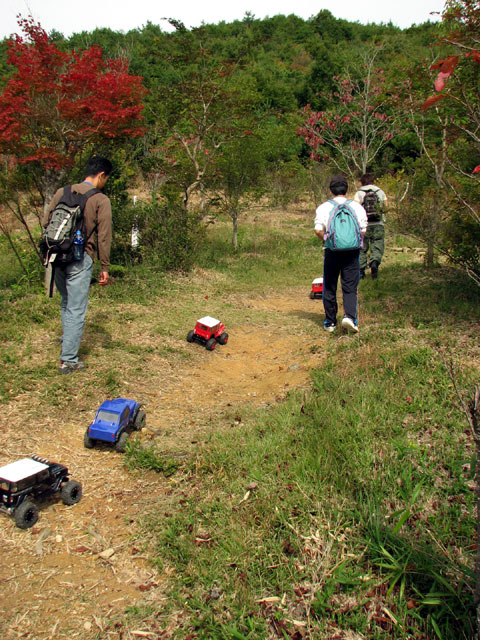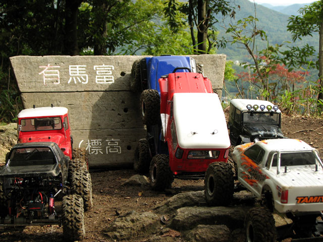 久しぶりのラジコン登山に行って参りました。 今回は私としては2回目の有馬富士です。 前日まで降り続いた雨もあがり、清々しい秋空の下のラジコン登山となりました。 今回のラジ登山隊メンバーです(左から) とんがさん:CR-01 やまさん:CR-01 ゴトチンさん:デトネ ムーンさん:AX10 きむさん:TLT-1 リキさん:バーグ 小高い丘を駆け上がり、登山道までまっしぐら。 あ~久しぶりなのでワクワクする~♪ 見返りの小道 ここを目印に登っていきます。 先頭はいつもリキさんでした、走破性No.1の特攻隊長です。w ちなみに今回は全員装着タイヤは「モアブ2.2」です。^^ M2、M3の違いはあれど、特に打ち合わせはしていないので、なんだかウケました。w しかしラジ登山にはモアブくらいが丁度いいかもですね。 ね、全員モアブでしょ?爆 そして突き進む、ラジコン登山隊。 事故もありました。^^; おっと、とんがさんのCRがもがいています。 リキさんが行けたところが、行けないっす!>< 真剣な眼差しで苦戦するとんがさん。w それでも駄目だったので、秘密兵器!! ウインチプレー!!w なんと、とんがさんのCRにはウインチが仕込んであるのです。 3ch操作で巻き取ることが出来ます。 リキさんのバーグに引っかけて・・ うりゃ!って感じで事なきを終えました。 しかし、この後ウインチが不調になってしまったので、一回こっきりのウインチプレーの見せ場となってしまいました。w しかし、生ウインチプレーを見たらめっちゃやりたくなってしまった・・・。 TLTに付けているディグは登山には全く不要ですし。爆 3PMで出来ないかな? ウインチプレーを堪能した後に、ゴトチンさんはポッキリ逝っちゃってるし。爆 再び突き進むラジコン登山隊。 はい、出てきました「わんぱく砦」 この看板に言葉を足すなら注意の横に「マジで」です。w 前回はA隊員が犠牲になりましたから。 ムーンさんのスコピも軽快だね~♪ リキさんに負けじと頑張りました。w やまさんのCRもベントアームを入れて走破性アップしてました。 で、すでにリキさんに追い越されていたり。w ってかなり急勾配なんですけど~。 これがわんぱく砦なんです。 と、そんなとき「ガガガガー!」 ムーンさんのスコーピオンが転がり落ちた!! スコピを助けに行ったムーンさん自身バランスを崩して、肘を強打!(↑その瞬間) ごめんなさい、私めっちゃ笑っていました。w 肘の汚れに注目です。爆爆 ムーンさん曰くめっちゃ痛かったそうです。←そらそうだ^^ もしかして未だに痛かったり? 前回A隊員が犠牲になった場所で、今回はムーンさんが犠牲になったので、わんぱく砦はマジで気をつけて登りましょう。 雨上がりで多少のぬかるみはあったので、よくタイヤの目詰まりしていましたね。 わんぱく砦にわんぱく者。 がんばるゴトチンさん。 デトネが頑張らないと、みんなデトネを買ってくれないと言っていましたね。^^; で、ことあるごとに「デトネどうですか?」 そのたびに一同「・・・・・。」www 頑張ったデトネとめっちゃカメラ目線のゴトチンさん。 みなさんデトネいかがですか?w 秋晴れの下のお月様。 なんやかんやで登頂しました。^^ しかし前半だけで、かなり楽しめました。 思い出しながら日記を書いているだけで、笑いが出てしまいます。 山頂でお昼にして少し休憩してから下山しました。 下山時の画像はこれだけしかないんです・・・。 動画も少し撮っていたので、SDカードの容量が一杯になってしまいまして。 登山時より、転げまわる率が高いので、私のマシンは破損しまくりました。 サーボ壊れて、ホイルは2つ割れて、フレームは曲がるわで最後は手で担ぎましたとさ。^^; 下山してから記念碑前の公園で、例の如くバギー大会をしようと思っていましたが、人大杉状態だったので、ひとまず記念碑周りの岩でクローリング大会。 するとギャラリーが増えて、みなさん人気者みたいでしたね。 私も修理して走らせたかったんですが、結局治せなかったです。orz とんがさんのCRを借りて遊ぶ子供。 二歳くらいのお子様が「ランクル、ヨンマル、TJ」と言っていたのにはビビりましたが。w 羨ましい家庭環境で育っているようです。 人もまばらになってきたところで、少しだけバギー大会しました。 やまさんの華麗なジャンプでぷりんぷりんと締めたいと思います。爆 ご参加の皆様お疲れ様でした。 PR |