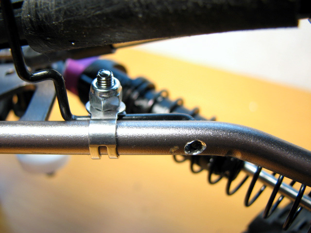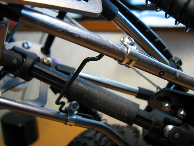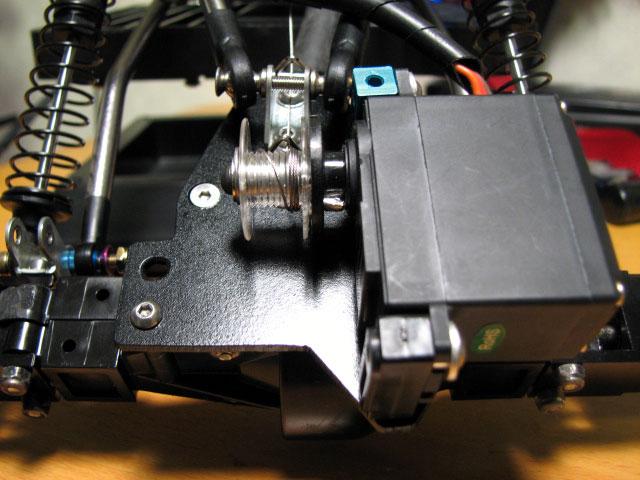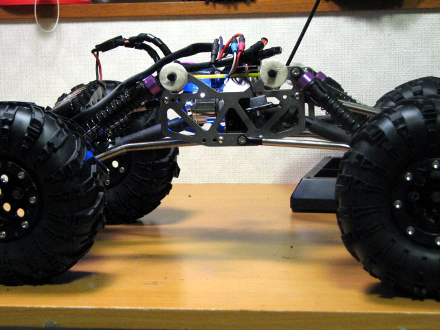 登山で故障したウインチダウンサスペンションを改修しました。 思うところ、自作ウインチサーボで任意の場所で回転を止めるのは、曖昧な目検討になりますので、正確性に欠ける為にやめにしました。 サスを沈めすぎたときにサーボや車体に負荷がかかり、精神衛生上にもよろしくないです。 また、自作ウインチサーボのため徐々に勝手にサーボが回るので、勝手に車高が低くなる、あるいは高くなるのでこれまた精神衛生上よろしくおまへん。w なのでせっかく3PMで3ポジション操作ができるので、その機能を使えば車高はおのずと車高は3段階に設定できます。 ただ、ミシンのボビンだとストローク量が足りないので、プーリー自体を大きくする必要があります。 なのでバーグサーボについていた大きめの円形のサーボホーンを二枚重ねしました。 もともと空いていた穴に2mmビスを挿して、ワイヤーを巻き取るようにしました。 今回、ワイヤーと言うより、ホムセンにて購入したブラインドコードなる糸を使用しました。 切断荷重が約58.5kgということで、ささくれない限りはまず大丈夫でしょう。 なにより切ったりする作業が楽で、扱いやすいです。 プーリーがサーボプレートに干渉するので、サーボ取り付け位置も一段上に。 ギリギリ干渉しません。 そしてプロポの設定をして、試してみましたがかなり良いです。^^ 低中高と行ったり来たり。w 行き過ぎることは絶対にないですからね。 しかもサーボの改造も必要が無いから、最初からこの仕様でやっておけば良かったと・・・。汗 ちなみに3ポジションだからと言って1→2→3だけでなく1→3といった感じに一段とばし出来ますよ。 3PMのSW1とSW2を両方オンにして、スライドスイッチのSW2のオンオフ操作で出来ます。 プーリーを大きくしても動作量が足りないという方はGWS125-1Tという台湾メーカーの激安サーボがあります。 360°回転して値段が1450円。 秋月電子さんで絶賛発売中です。w ちなみに私買っていたりするんですが、スプラインがフタバと互換性が無かったんでお蔵入りです。^^; プーリーもちと大きすぎたんで。 追記分 3ポジにしたは良いんですけど、ボディーを乗せると自ずと車高は若干下がってしまうんですよね。 なので、一番車高を高くできるように操作しても、ボディーの重みで上がり切らなくなってしまいします。 故に3ポジション車高仕様なんですが、基本2ポジションの高さ調整しか出来ません。w それなら、小さいプーリーにして動作量少なくなっても、デカプリー時の1→2のポジション位ならまかなえそうだったので、プリーを小さくしました! まあ基本バネの反発力で車高を上げますので、バネをハードに変えるっていう手もあるんですがね。 やっぱサーボ位置も下げたかったし良いんです。 しかし、なるべくプリーの外側でワイヤーを巻き取るようにはしました。 家中試走ではなかなか良い感じです。^^ あと酷かったトルクツイスト対策に、スタビライザーを入れてみました。 Mシャーシ用のスタビの流用です。 スタビ両端を曲げる加工してます。 ロアリンクに穴を開けて取り付け。 TXTの説明書を参考にしました。^^ トルクツイスト・・・・あんまり変わらないような・・・。爆 |
