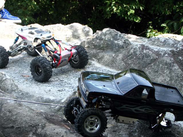 久しぶりにお昼にどんづるに行ってきました。 セミはジージー鳴き、太陽はジリジリ照りつける中、汗をボタボタ落としながらのクロウリングでした。^^; ジラクロでのお初どんなので楽しみにしていましたの! 装着タイヤのMud Slingersはさすがにモアブほどはクロウリング向きではないですね、「泥投げる人」ですから!爆 モアブが岩肌をつかむ感じなら、マッドスリンガーは爪で引っ掻き出す感じです、パドルみたいなもんですね。 でも、個性的な特徴のあるタイヤですので気に入っております。 十分にクロウリングを楽しめましたもの。 ちなみにジラクロはドラグブレーキのドの字もないくらいブレーキが効きません・・・。orz TLTがニュートラルで止まっていられる斜面でも、ジラクロは下っていきます~!w しかし、1.9はテラ楽しす!! 2.2でリアル指向な人の気持ちが分かりますね、なんだかニヤつきながら操作できますもの。^^ とある方が小出しでF350画像を見せてくれるので、なんだか自分もF350フルオペが欲しくなってきたっす。爆 1.9サイズのジラクロなんですが、2.2のTLTよりも最低地上高が高かったりします。 ジラクロのホーシング下部が40mmでTLTが35mmです。 ダブルウィッシュボーンの特権ですね、TLTで引っかかる突起物をジラクロでは難なくクリア出来てしまう場合があるので、1.9タイヤでも意外にストレス少ないです。 しばらくはジラクロで遊べそうです♪ |