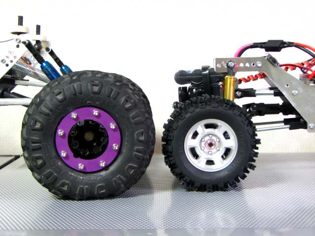 可哀想なのでニュータイヤを履かせてみました。 RC4DWのMud Slingersです。 ヤフー翻訳で「泥投げる人」らしいです、。爆 1.9インチホイルに合うサイズなのでかなり小さめです。 モアブ2.2と比べても小さいっす、可愛い~♪ ホイルはタミヤFORD F-350の純正プラホイールでウエイトはフロント一本合計180g、リア一本合計150gです。ちょっと軽いかな?って感じです。 ちなみに外径は95mmです。 ジラクロにはもってこいの1.9サイズですね。 走破性は最初から諦めています。w どちらかというとリアルな方向で行ってみようかと思っているんですが、ボディーがまだ検討中だったり。^^; 日曜日までに仕上げたかったんですが、あれもこれもやっているので手が回らない状態です。 二兎追い生活中ですねん。w PR |