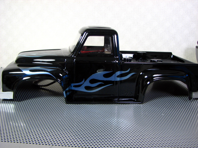 クロリ菌感染させてしまいました。 なんかいろいろサイト調べてるみたいだから、そのうちココにも辿り着くかも? てかもうバレていたりして?^^; バレていたらコメントください。爆 そんなこんなでようやくボディーに着手しました。 いつも私はボディーで急ブレーキがかかってしまうんですよ・・。; めんどくさがり屋なのにこだわるので。 でも、なんか会社にカッティングマシーンが導入されましたので、それを使わない手はない! さっそくファイヤーパターン(フレアライン?)を上司に頼んで切り抜いてもらいました。 初めてのファイヤーパターンなので少々緊張気味で作業を進めていました。 てか、塗装作業はほぼ会社で済ませました。。。仕事中に。。。汗 ボディーはいろいろ悩んだんですが、やっぱりトラック系が欲しかったのでF-100にしました。 パンプキンですね。 HPIのが形が変わっていて欲しかったんですが、どこのラジショップにもなかったので、パーマのミッドナイトパンプキンボディーを購入しました。 実際、大きさ的にこっちの方が合っているのかな? HPIのF-100の実物を見たことがないので何とも言えませんが。 で、完成しました。w 黒ベースにファイヤー部分はスカイブルーアルマイト、グリルバンパー部はサテンシルバーアルマイトを使用しました。 ピンクアルマイトにしようか悩みましたが、今回はブルーをアクセントにしていますのでボディーもブルーで合わせました。 なんで黒ベースにしたかというと、荷台部分はかなり入り組んだところで缶スプレーの届きにくい場所だったもので、んなところは原色じゃなかったら絶対にムラになるということで黒っす!爆 テールライトはオリジナルですがあんまりだな・・・。^^; 頭の中ではもうちょっと派手になるかな?とは思っていたんですが、意外とシンプルになりましたね。 でも、はじめてのファイヤーパターンにしては上出来な方だと思います。 でも、これ以上の接写はしませんよ~。爆 会社で塗装作業をしている間に家に曲げリンクとパチンコ玉が届きました。 パチンコ玉は40個っす! 一個=5gだったのでもうちょっと頼んだらよかったな・・。 とりあえず、フロントタイヤに20個ずつ入れてみました。 あと、固かったショックのスプリングもDF-03のセッティングスプリングに交換しました。 フロントミディアム、リアハードで様子を見ます。 ハードでもTXTローフリクションダンパー付属のスプリングより柔らかいです。 今回の進化の集大成! やっぱり電飾も施しちゃいました~♪ ん?やっぱ足上げするとボディーに干渉しますね。 早速カットですか・・・。orz あ~後はタイヤだよ~。 早く来い来いモアブちゃん。 |