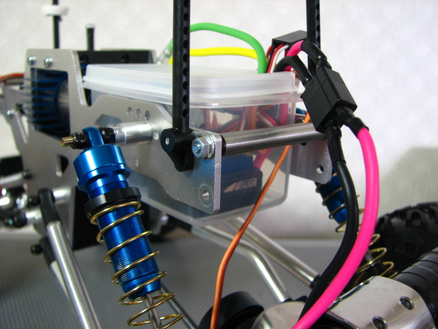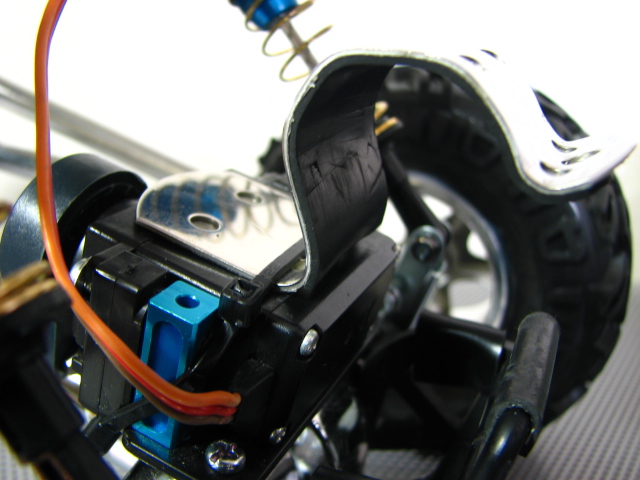 ↑はフロントバッテリなんですが、柔らかモアブじゃパチンコ玉は入れるの辛いので思い切ってバッテリをフロントサーボ上へ移動させようと考えました。 前に考えた考案1ですね。w しかし、どうしてもトレーサーの今の状態ではストレートバッテリがサーボ上に収まりきらないので、バッテリをバラしてみようかとも考えました。 でも、やっぱりストレートで行きたいんじゃ~! で、板金してみました。w ホムセンに売っていたステンレスステーを手曲げして、バッテリを挟む部分とアクスルガード上にゴムシートを貼っりました。 サーボ上に強力両面テープとタイラップで取り付けしました。 ミテクレは悪いですが、かなり試行錯誤して芸術家の如く曲げては戻し、曲げては戻しして出来た究極の一品なんです。爆 究極の一品なのでワンタッチでバッテリを外すことが出来ます。 装着もワンタッチですが意外に強くホールドが出来るので、試しの家クロでも外れることはありませんでした。ワーイ ええ、クローラーになってからやっとこさ自作しましたよ。w あと、バッテリをより前にしたので、元バッテリがあった位置にアンプと受信機を移設。 その際に汚れ防止のため百均で購入したミニタッパーを装着! サイズぴったんこ! 海外動画では水の中を走るクロ車なんてのもありますが、そんなことぜってーにしね~!! 私の場合は純粋に汚れ防止の為っす! 蓋を閉めれば配線類もスッキリするので良いです。 ただ、アンプの熱が心配だな、、、夏はファンでも付けようかな? あ、リアサーボの線が届かないや!爆 延長コード買わないと・・・。; ついでに?タイヤの喰いつきを良くするために、フロントのインナーのみカットしてみました。 臆病なので取り敢えずはこの程度のカットでいってみます。 ↑カット済み ↑未カット 若干凹みます。期待して良いのだろうか? 重心を前へ前へとやったので、リアが軽すぎる感じっす。 オモリを買ってこないといけないな~。 明日は平年を下回る寒さだって~!! どないやねん、暖冬さんよ。 |