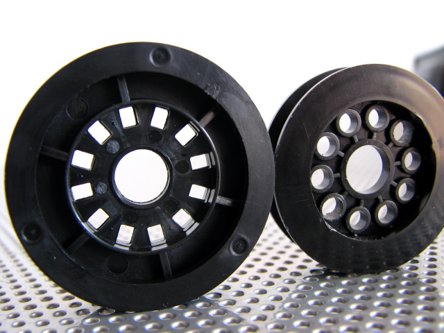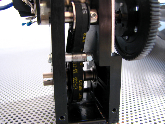 ある程度のターン数でトルクの頭打ちがあるようなんですね。 そんなことを実験なされていたGRCさんのモーターテスト。 めっちゃ参考になりました。 実際、私は現在ジョンソン540モーターでピニオン16Tですが、クロってる時にはもう少し低回転で回したい場面が幾度とありまして、高ターンモーターの購入を考えておりました。 で、定番ぽいのがイーグル55Tモーター でも、これって¥3000くらいするし、ただいま金欠中ですし・・・。w汗 そこで先程のGRCさんのモーターテスト。 ヨコモのプロストック2 35Tモーターがイーグルの55Tモーターよりトルクがあるっぽい。 値段も実売1300円ほどだしモーターはこいつにケテーイ! あと、ギヤ比をローギヤード化することで低速(トルク重視)に出来るので色々調べました。 基本、ピニオンギヤ小さく、スパーギヤ大きく、センタープーリー小さく、デフプーリー大きく。 まあ、この辺は何となく解っているつもりでしたんですが、調べていくうちに『モジュール』や『ピッチ』なんて言葉が出てきまして・・・。; はあ?何やねんそれ?って感じ~。 また覚えなければならないことが出てきたっす。 簡単に言えば歯の大きさの規格みたいなもん? モジュールはタミヤ独自の企画で、ピッチが一般的な規格? この辺から?マークが多くなります。爆 んで、タミヤのモジュールは04、05、06とあり、TLTのスパーギヤは06みたいです。 この数字が小さくなると歯も小さくなるみたい。 なので同じ外径でも、04のほうがより多くの歯を付けられるメリットがあります。 しかし、歯が小さいのでトルク負けを起こして歯が破損しやすいデメリットがある? ピッチのほうは逆に48Pと64Pがあり数字が大きくなるほど歯が細かくなるみたいです。 クロウリングにはトルクが不可欠なので、そのままの06モジュールでいきます。 TLTスレでカワダから06Mの12Tのピニオンが出ていると言うことを知り、即行で購入!w しかし、TLTのギヤボックスは16Tまでしか無加工で取り付けられず、それ以下のピニオンを取り付ける際にはモーターマウントやらギヤボックスを削らないと使えません。 これらの作業はヤスリでも出来ますが、リューターがあれば簡単っす♪ で、06Mスパーは83Tまでみたいなんです。 TLT標準が83Tなので変えられませんねん。w サードパーティー製で06Mのスパーないかと探しましたがないみたい。 ま、いいや。 あと、二次減速比をRSSさんに習ってヨコモBD用リアドライブベルトとサイクロン用39Tデフプーリーを使って変更しました。 手前:サイクロン用プーリー 奥:TLT用プーリー TLTのプーリーが32Tでサイクロン用が39Tなので7Tアップ。 もちダブルベルトもパクらせていただきました。w ギア比の計算は(覚えておくと便利♪) 一次減速比 =スパーギヤ÷ピニオンギヤ 二次減速比 =デフプーリー÷センタープーリー 最終減速比 = 一次減速比×二次減速比 らしいのであてはめてみます。 一次減速比:(83÷12)=6.9166 二次減速比:(39÷15)=2.6 最終減速比:(6.9166×2.6)=17.98316 デフプーリーが1回転するのにピニオンギヤが約18回転しないといけない。 ちなみに変更前のギア比 一次減速比:(83÷16)=5.1875 二次減速比:(32÷15)=2.1333 最終減速比:(6.9166×2.6)=11.0664 デフプーリーが1回転するのにピニオンギヤが約11回転しないといけない。 数字だけ見るとたった7回転しか違わないように思いますが、モーターも35Tにしたのもあるけど、結構な遅さになりました~。ワーイ さ~て、今回の記事最後まで見てくれる人どれだけいてるかな~? めっさ頭イタイんですけど~!>< 今回の記事は読み直すのも嫌なので、誤字脱字はご愛敬と言うことで!爆 ちょっとブレイクタイム♪ 最強のお家クロウラー現る!? タミヤのレスキュークローラーです。 てか、たまにはミニジラ、タムギア、AWDも出してあげないと・・・。^^; PR |