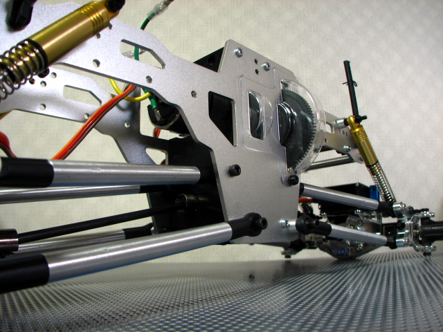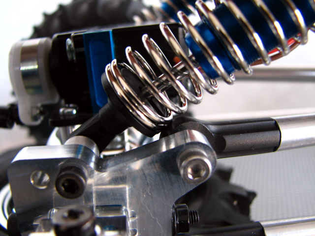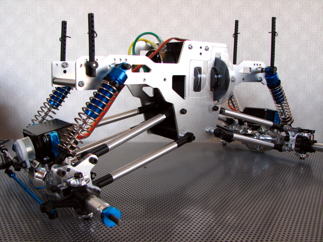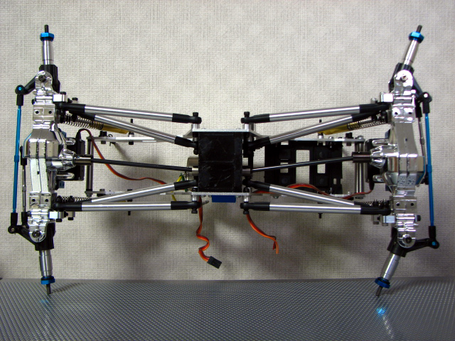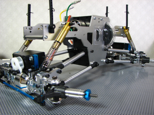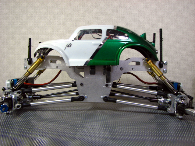 手前のオプションカーボンシャーシと比べてもその長さは一目瞭然ですね。 さすが1/10クロウリングコンバージョンキットです。 そして、バラしついでにお決まりとなっています?ベルトテンショナーを作成してみました。 TLTのトランスミッション。 高さがあるのでその分車高もたかくなってしまうのね。 このギアボックスをそのまま使用できるのがトレーサーの良いところっすね。 M3の25mmネジとスペーサーとベアリングとナイロンナットで作成。 とりあえず、一番小さなベアリングを使用しましたが、ベアリングの外径変更でテンションを強めることが出来る位置に穴をあけました。 思っていたより上手くできたので満足っす♪ 地雷パーツと言われるトレーサのドッグボーンです。 よくピンが抜け落ちるみたいなのでシューグーをピン付近に塗布して固めてみました。 瞬間接着剤きらしていたもので・・・。 上部リンクにスペーサー(M4ナット)をかます。 これでデフギヤケースに角度がついてドッグボーンが擦れないらしい。 で、間をとばして、、、、 出来上がりました。爆 睡眠時間を削り、仕事もフラフラになり完成させました。 う~ん、でもノーマルショックじゃちと辛いんすよね~。 ボトム時に干渉するし、、、 フロント部分です、でも手で持ってます。 手を離すと、、、 バッテリの重みで沈みます・・・。^^; そして、ボディーなんですが LYNXバハバグ小さすぎ!!爆 と、時間もないのでこの辺りで今回は終わりです。 えらい省略記事ですみません。m(_ _)m |