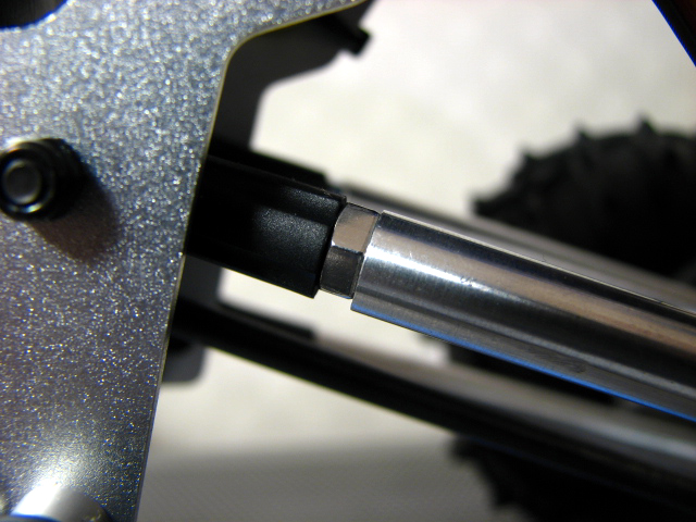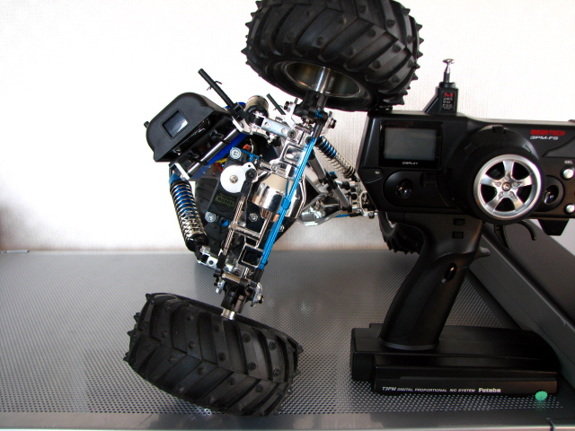 そこでTXT-1のオプションのローフリクションダンパーを投入です。 ちょうど二つラジショップでぶら下がっていました。w クロウリングにはショックにオイルを入れないのが基本らしいので、潤滑程度に一番粘度の柔らかいオイルを2、3滴入れたのみです。 オイルを入れる作業が省けるので結構楽ちんっす! 手でボトムさせてみてもかなりの反発力です。 ん?でもこれちょっと固すぎるような・・・・。^^; 段々とブルーカラーに浸食されつつあります。爆 実はこのカラーも購入のポイントです。w フロントバッテリでも沈まないっす!ヨシ 百均で購入したバッテリベルトもブルーっす!w でもね、やっぱりフルボトム時にはボディーポストやロッドエンドに干渉してしまいます。 トレーサーってアクスルブレースマウントの位置絶対にミスってない? とりあえずオンライン説明書通りの組立では干渉のせいで動きに渋みが出ます。 足上げも大した角度じゃないですし。 で、RSSさんのブログを参照して私もノーマルの金属パーツを使って足回り変更っす! 使用パーツはコレ。 アッパーサスステー 品番BJ1 トレーサー組立時に外すパーツです。 こいつをアクスルへ取り付けます。 こんな感じで取り付けるだけ。 アクスルブレースマウントにはボルト一本で止めているのでかなり閉めないと前に倒れるおそれがありますが、スプリングの反発で実際には前に倒れませんので大丈夫。 それでもまだボディーポスト側には干渉しますので、3mmのスペーサーをかまします。 これでフルボトム時にボディーポストとロッドエンドに干渉することなくスムーズに動くことが出来ました。ワーイ ショックのマウント位置を高くすることで腹下の地上高もついでにアップ RSSさんの方法とはちと違いますがお手軽で良い感じです。^^ そして、この改造の効果は絶大ですよ~。 かなり足上げ角度もアップしました~♪ リアタイヤ少し浮いているのは内緒です。w やっぱスプリングは固そうなのでテキトーなの探そう。 今回は小さなパーツが大活躍したオイルショックな改造でした。爆 おまけ情報ですが、 前々回に抜けたトビーのシャフトのピンパーツが売っておりました。 これで治せるぜ~!ってもうトレーサー組んだっつーの!w PR |