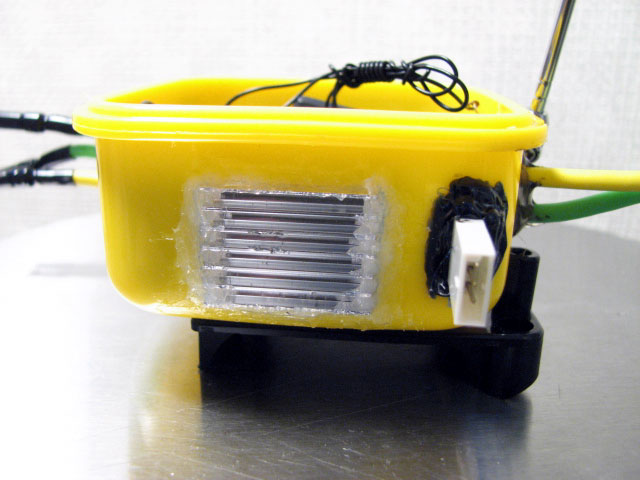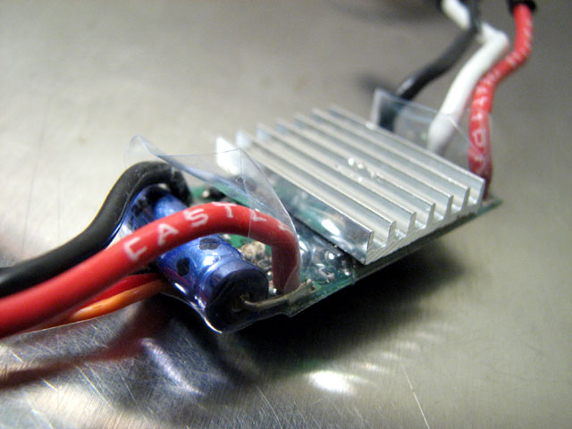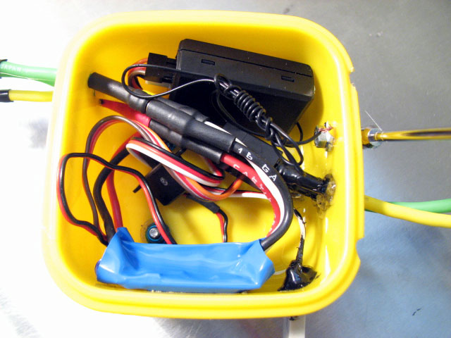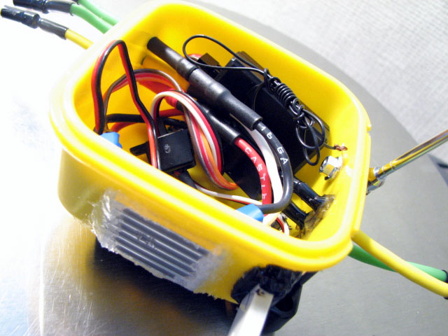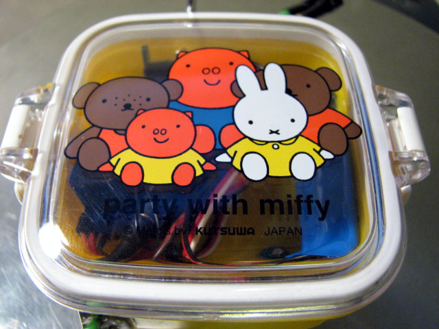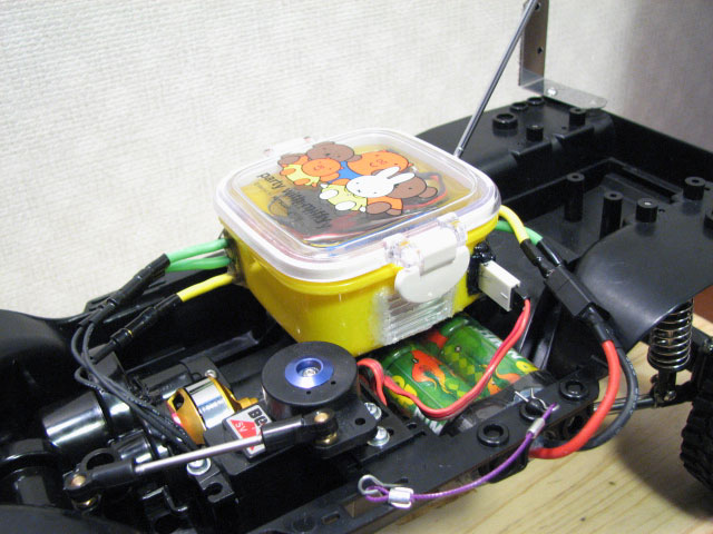 発熱するESCを密閉された場所に置いておくのって、絶対に良くないと思いました。 熱の逃げ場がないので、どうにか逃がしてやれないかと・・・。 CCに積んでいるマンバ25です。 はっきり言って、タッパーに入れたままではヒートシンクの意味がないんですよね。^^; このESCは結構発熱しやがるし・・。w で、おもむろにシュリンクを破り・・・。 こんな感じにしてやりました。 線の出し方を逆にしただけです。 四角いタッパーにヒートシンクが出せる穴を空けて・・・やりたいことお解りですよね。 これで、タッパーの中に入りながらも、ヒートシンクで基盤を冷やせる!・・はず。 蓋はミッフィーです。w てか、この手のタッパーが我が家にぎょーさん転がってましたわ。 トーマスのフタもありますよ。爆 子供のお弁当のお供になっていたようです。 creamさんと同じ、フライ返しでスキッドガードも造ってみました。^^ で、いつ走らすんでしょ?汗 |