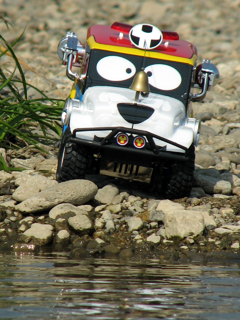 あちゃー、前に水遊びしたのでモーター逝っちゃった? なのでギヤボックスを外してからモーターの様子を見ることに。 しかし何かおかしいです、ギヤを外しているのに前輪が回らなかったんです。 ビードロックリングにCハブ当たっとるやんけ~! (ナックルは青いのw) チッ、走らす前から早速傷物にしてしまった。>< 思えば、トレッドを狭めるために4mm厚のクランプ式ハブ入れてたんですわ・・・。 (ハブは青いのww) ノーマルの?6mmのプラハブを入れて事なきを得ましたが、ギヤボックスに砂が咬んでいるようで異音がします。 ついでに水洗いでもしますか。^^ まだまだおいらも青いの~。(^_-) PR |
