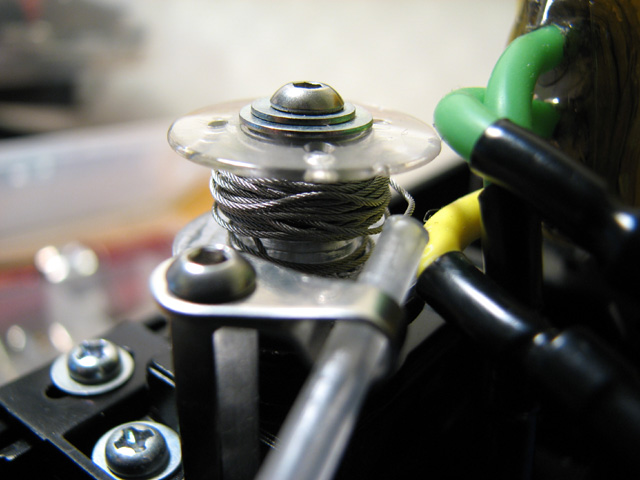 ウインチ、ウィッシュ! CC付属パーツを使って、ステアリングサーボと対称位置にウインチサーボを配置。 急いでホームセンターで買ったボビンなので、透明プラのしか売ってませんでした。 後日覗いた百均には金属製のが売っていたんですが・・・早く作りたくて。 強度が心配です。^^; アンテナパイプでワイヤーの通り道。 「雀の子 そこのけそこのけ ワイヤーが通る」 ワイヤーはホームセンターでついでに買った0.45mmのステンレスワイヤーです。 細いですが、なかなか強度はありそうです。 フェアリードをどうしようかと迷っていましたが、ラジ屋にてヘリのマフラースペーサーなるものを見つけてあっさり解決しました。w ファンテックの「A328 30マフラーオフセットスペーサー」です。 ローラータイプではないのですが気にしません。 テストでも問題なく宙ぶらりんこ出来ました。爆 さあ今年最後のラジ登山でウインチプレイするぞー!って意気込んでいたんですが、 やっぱ1.9で登山はしんどそうかな・・・と一抹の不安が頭をよぎる。 いつもの2.2のTLTでも良いんですが、どっちかというと今のTLTはコンペ仕様だしな・・・ディグも付いているし。 ラジ登山専用にウインチ付き2.2サイズが欲しくなってきました!w でもそんな金ねぇ〜〜っす! |