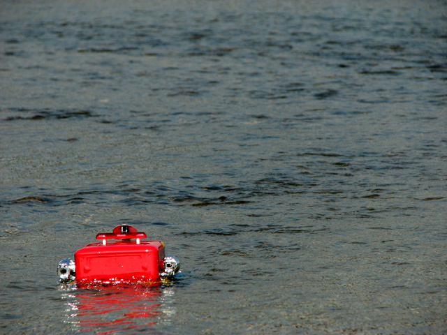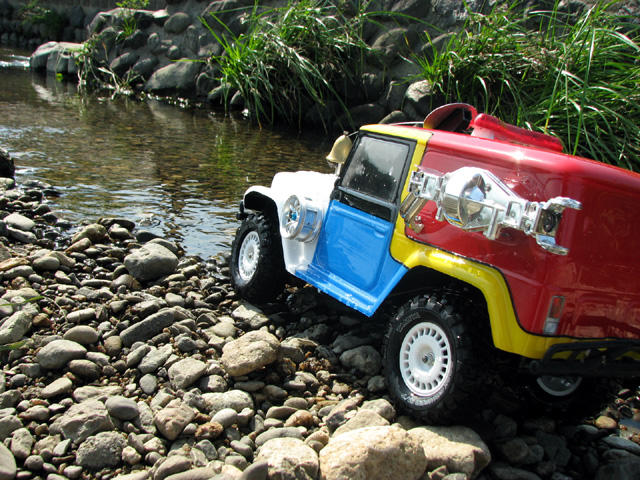 4:3でアップロードしているのになぜか上下黒帯がついてしまいます。>< 季節は夏を通り越して秋真っ盛りですね。 そんな秋晴れの中、息子を引き連れてラジコンを持って川に行ってきました。 何をするのもこの季節って感じですが、水浴びだけはあまりしたくないですね。w しかしヤッターワンは水に入ったどーーッ!! 深いところでは浮いちゃって中々前に進めず。爆 タイヤとタッパーの空気が浮力になっているみたいです。 あと、水の抵抗も半端ないですね。 48Tモーター×2:1リダクションで地上では良い感じなんですが、水中では亀です。^^; そうです、前回より若干仕様は変わっております。 ブラシレスモーターからブラシモーターに変更。 モーターは某掲示板のアドバイス通り風船でくるんでおります。m(_ _)m まあ壊れても安いモーターなので、使い捨て感覚でいこうと決めました。 アンプはVFS-FRに変更、ちゃんとヒートシンクはタッパーから外へ出るようにしています。 リダクションユニット+ブラシモーターではバッテリボックス削らないといけないので、そこに収まるようにタムギア用バッテリに変更しています。 撮影に夢中になっていると、チビは案の定下半身ずぶ濡れになっていました。orz 着替え持ってきてないのに・・・。 なので秋空の下、フルチン野郎です。w パンツとズボンはお日様に照らされています。 で、一通り撮影してからタッパーを開けてみたら、若干浸水してました。汗 運良くアンプや受信機は無事でしたが、ちょっとヒヤヒヤしましたね。 コーキングのやり直しです。 濡れたラジコンを乾かしもって、親子二人水入らずでおにぎりを食べました。 おもいっきり水に濡れてましたが。爆 水遊びは楽しいですが、言っている間に冬か・・・。 PR |