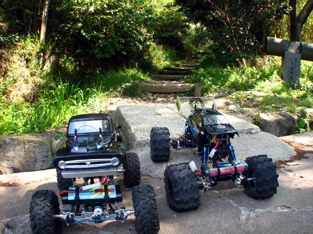 えーっと今頃になってGWのラジコン日記です。w 大阪南河内の人ならご存じの「二上山」にRC登山してきました。 前日に上司が下見に行ってかなりイイ!との連絡があったのでウキウキで行って参りました。 クロウリングを始めてみて他サイトのみなさんがRC登山をしていたのを知っていたので、私もいつかはやってみたかったのです。 今回は画像が多いので初めての続き記事 登山道入り口で記念写真パチリ☆! 高鳴る鼓動を押さえていざRC登山っす! で、いきなり木登り。wナンデヤネン はい、ここから画像連貼りです~。 二上山良いわ~、中腹あたりが特に遊べます。 道行く登山家さま達は皆一応に「こんなところ登れるの?」「馬力有るね~」と驚きのご様子。^^ 今回は、上司と上司のお目付役?と私の三人で行って参りました。w お目付役様にはカメラマンとして役立っていただきました。アリガトウゴザイマシタ フリクラ容量制限のため元さや。w もうね、楽しすぎて転げ落ちまくりました。爆 転げ落ちすぎてホイルアクスル二回ポッキリ逝っちゃましたよ・・・orz ちょ、トビーのワイドナー弱すぎだす。 私がホイルにおもり入れ過ぎな気もするけど。 で、上司の車もトラブルに見舞われ途中でベルトが切れまして、チャンプへ行きベルトを購入して再び登山開始。爆 一日に二回登山、上司は前日と併せて三回。 クロリ菌重症患者は次の日に筋肉痛と闘うのでありました。www で、家に帰って破損箇所点検しました。 デフケースのCハブ部分がポッキリと、、、この部分はミニジラのバルクヘッド並みに弱いっぽい。 アルミターンバックルのステアリングロッドが若干曲がりました。 ここらの故障箇所を治しました。 昔に33さんに教えて貰ったプラリペアを使ってCハブ部分を補修しました。 初めてのプラリペア作業でしたので、最初は割れた箇所だけに接着剤のように少しだけ付けました。 くっつきましたが強度的にだめだめですぐに割れてしまいました。 プラリペアのサイトにはガラスクロスを使う補強方法が書いてあったけど、そんなもんないので二回目はメッシュ状になった針金を破損箇所にあてて、プラリペアを山盛りにしました、ちょうど割れた部分の表と裏に。 鉄筋コンクリートのイメージっす!w メッキデフケース使用のためメッキ部分は喰い付きをよくするためにヤスリで削りました。 これで試走させて思いっきり転けたけど、割れませんでした。運が良かっただけかも? ついでに残りの三カ所(アンダーのみ)も同じ方法で補強しておきました。 ステアリングロッドは4mm長ネジと5mmパイプと7mmパイプの三重構造です。 5mmパイプの上に7mmパイプはスカスカですけど気にしない! ロッドエンドは京商製の6.8mmボールエンドと6.8mmハードボールを使用しました。 ちょうどトレーサー付属のロッドエンドと同じサイズですね。 故障箇所も多々出た初めてのRC登山でしたけど、とても楽しむことが出来ました。 お次はやっぱり「どんづるぼう」? PR |